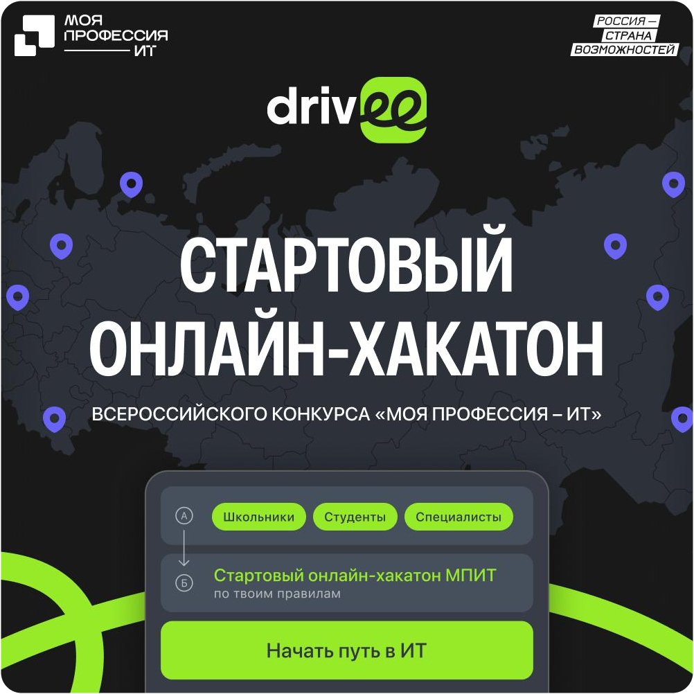 Официальный партнер и постановщик задач хакатона —сервис Drivee — один из топовых сервисов такси и доставки в России! Ты получишь реальный кейс от лидера рынка, разберешься, как строится успешный бизнес в ИТ, и сразу применишь знания на практике.