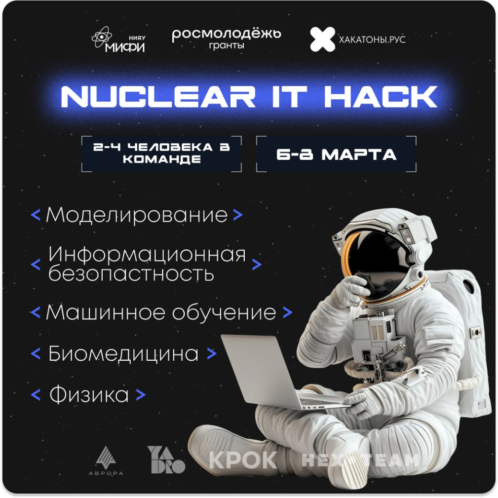 6–8 марта 2026 года в очном формате на базе НИЯУ МИФИ пройдёт Nuclear IT Hack — хакатон для школьников и студентов, интересующихся программированием, анализом данных и современными технологиями. Участникам предстоит решать реальные научные и индустриальные задачи, где IT применяется в науке и инженерии.