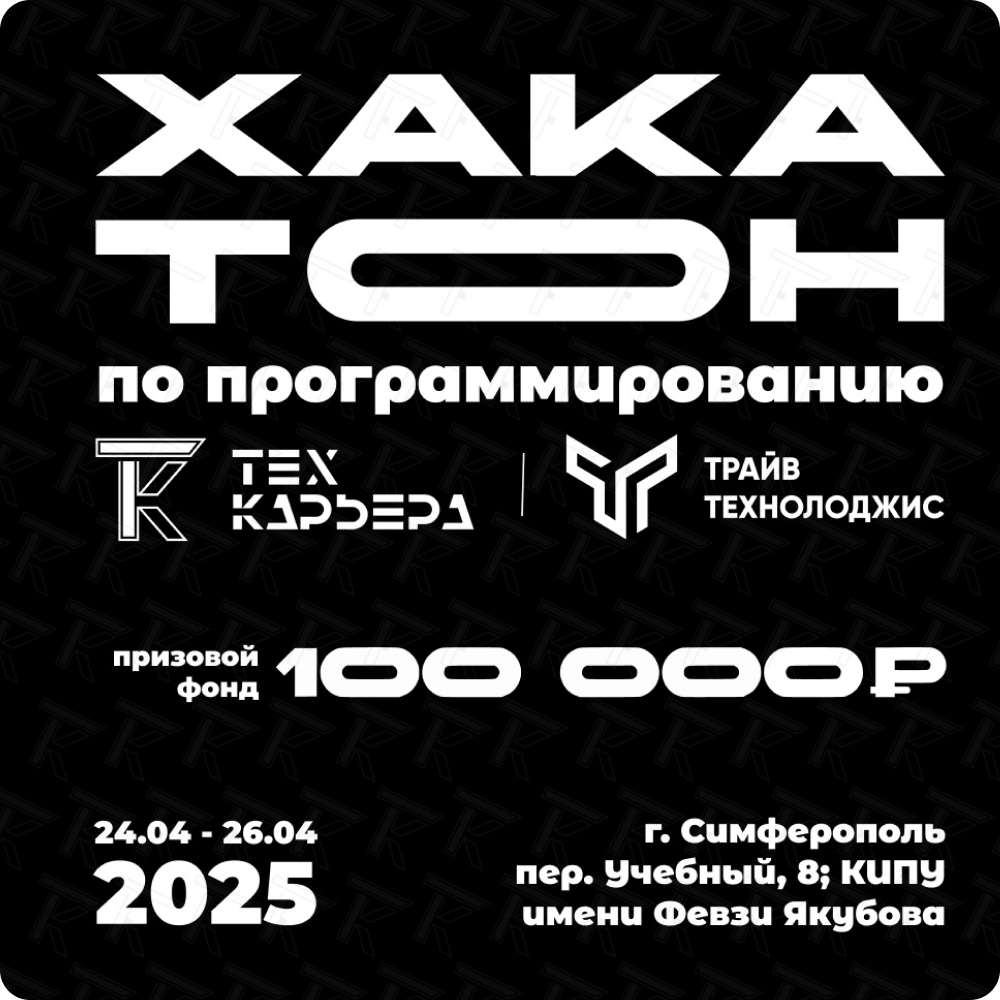 Призовой фонд: 100 000 рублей. А по завершению хакатона компания-соорганизатор «ТРАЙВ ТЕХНОЛОДЖИС» отберет лучших участников и предложит официальное трудоустройство в свою компанию!