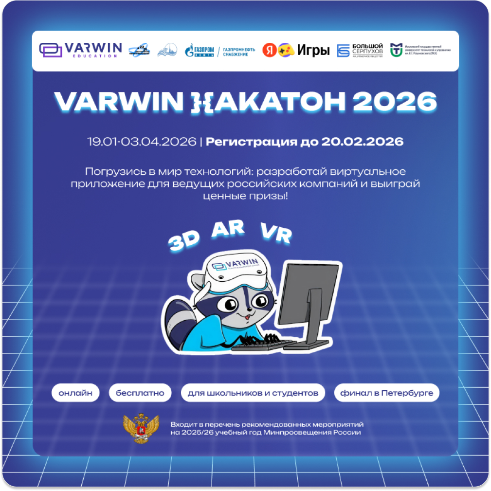 Это масштабное всероссийское соревнование для школьников 5–11 классов и студентов СПО и ВО, где участники создают виртуальные проекты для реальных бизнес-заказчиков на платформе Varwin.