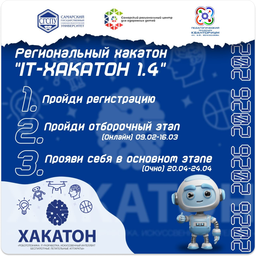 Открывается дистанционный отборочный этап регионального конкурса «IT-Хакатон 1.4», который проходит в Самаре и объединяет сильнейшие школьные команды региона.
