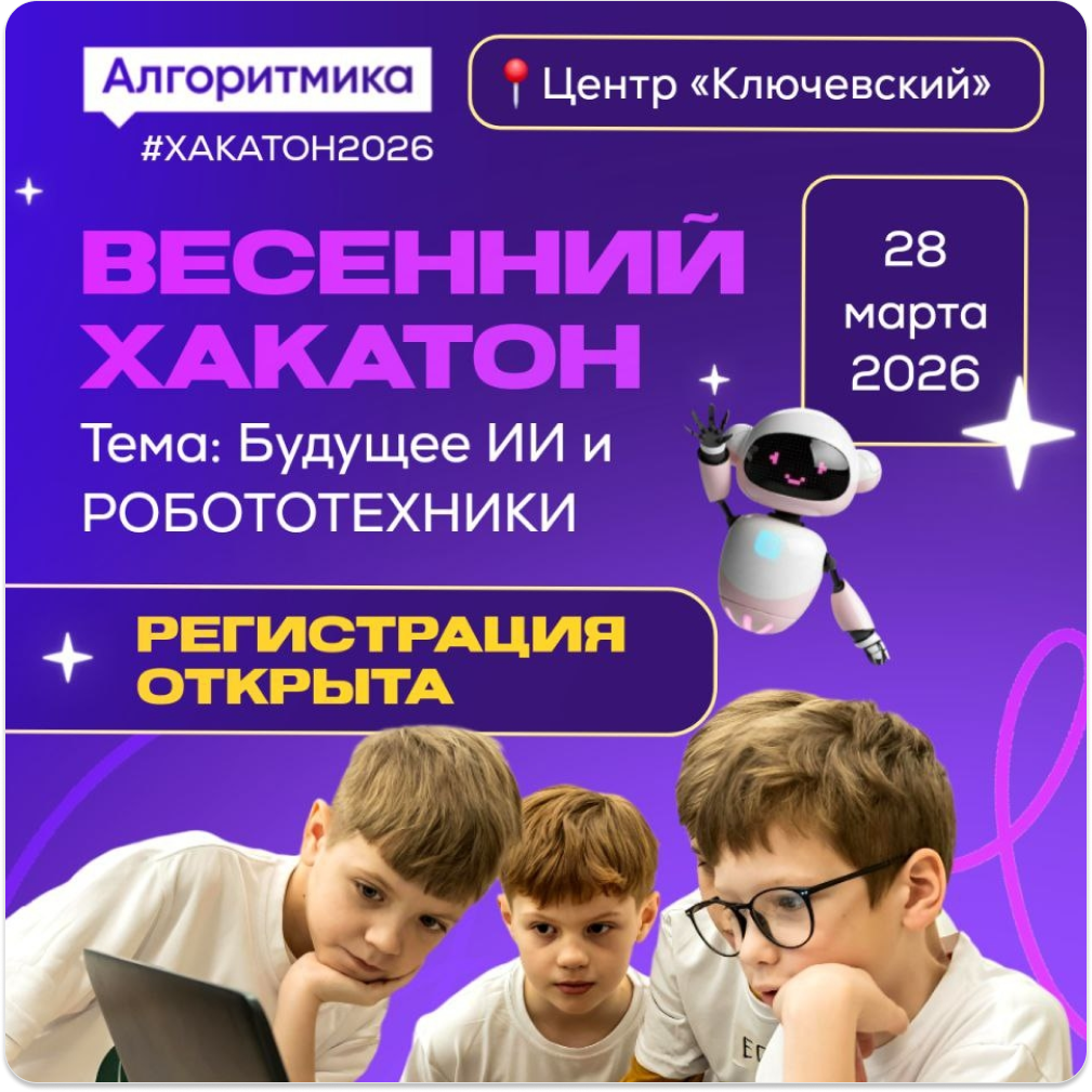 Хочешь прокачать навыки программирования, поработать в команде и создать проект, который увидят профессионалы? Тогда тебе на весенний хакатон Алгоритмики!