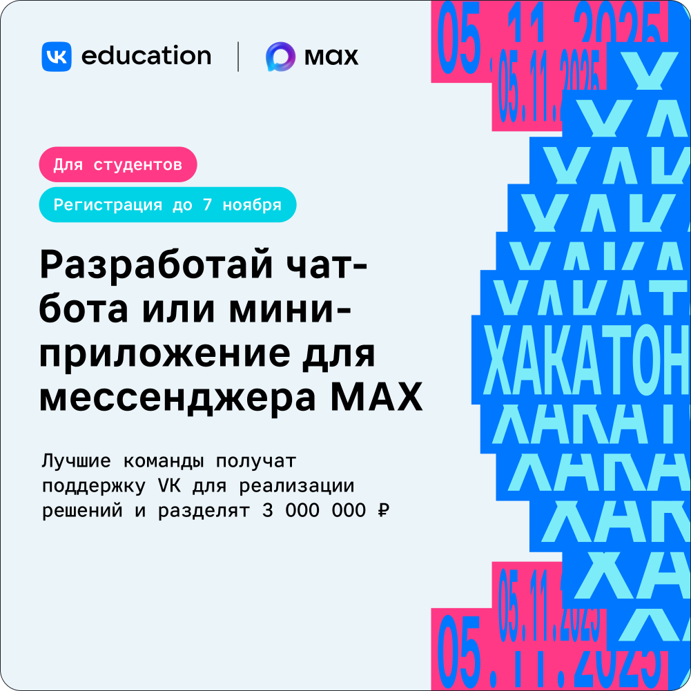 MAX и VK Education объявили старт студенческого хакатона по созданию чат-ботов и мини-приложений для национального мессенджера.